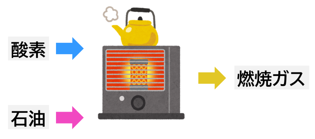 石油を燃やすには酸素が必要です。そして、石油を燃やすと必ず排ガスが出ます。